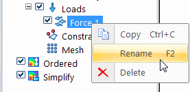 Right-click the Force 1 load and select Rename.