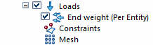 Force loads are listed under the Loads collector in the Simulation pane.