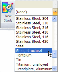 On the Simulation tab→Study group, select Steel, structural from the Material List.