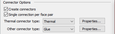 When defining a new thermal study, create thermal connectors automatically using the Connector Options section in the Create Study dialog box: