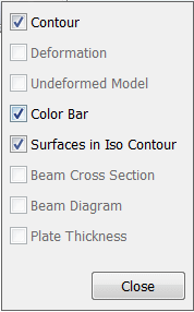 If the model contains plate or surface elements, you must select the Plate Thickness check box on the Display Options list to display iso surface contours instead of iso line contours.