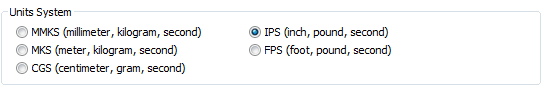 Select IPS (inch, pound, second) to change to the imperial unit system.