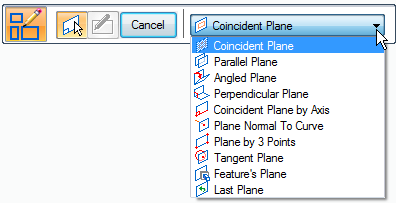 Selecting the type of plane from the Create-From Options list on the command bar.