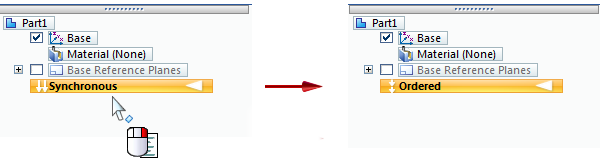 Some sheet metal functionality does not work as well in the synchronous environment. An example of this is converting a synchronous solid model to a sheet metal part.