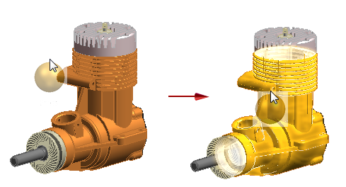 You can drag a material color swatch from the Style Palette onto parts and features in the assembly model. The located body highlights to indicate that the material color is applied.