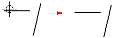 If the element you want to extend to is not the nearest element, you can specify the element to which you want to extend by holding the Ctrl key, and selecting the element first. For example, if you want to extend the horizontal line (A) to the angular line (B), hold the Ctrl key, and select line (B). Release the Ctrl key, and then select line (A).