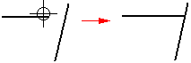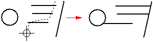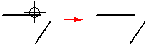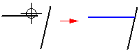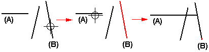 If the element you want to extend to is not the nearest element, you can specify the element to which you want to extend by holding the Ctrl key, and selecting the element first. For example, if you want to extend the horizontal line (A) to the angular line (B), hold the Ctrl key, and select line (B). Release the Ctrl key, and then select line (A).