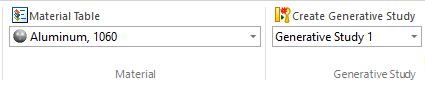 The study name and applied material are displayed on the Generative Design tab on the ribbon, as well as in the Generative Design docking pane in PathFinder.