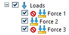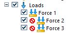 indicates the loads that will not be evaluated in the results. Example:Suppress loads Force 2 and Force 3, leaving Force 1 load active.