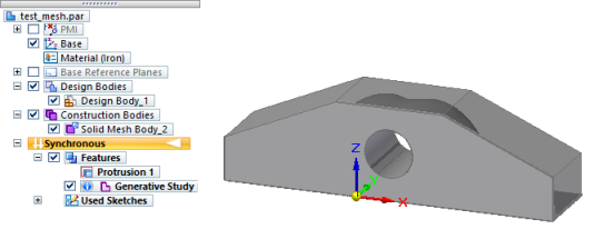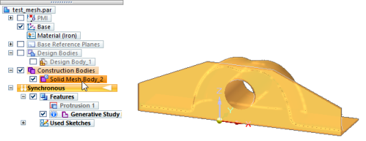 Note:You can select (highlight) the solid mesh body, but you cannot select individual faces or other elements in the mesh.