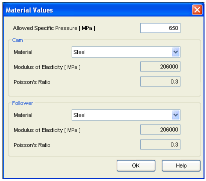 The Material button is given on Design Parameters tab to select the material of the Cam.