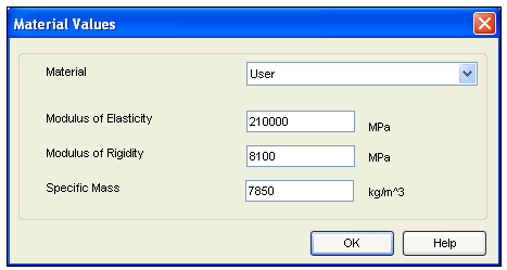 Now the entry fields for Modulus of Elasticity, Modulus of Rigidity and Specific Mass will get enabled and you can enter own values.