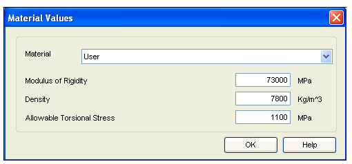 In User material mode, you are expected to enter the value of Allowable Torsional Stress as Ultimate Tensile Strength.