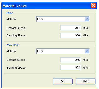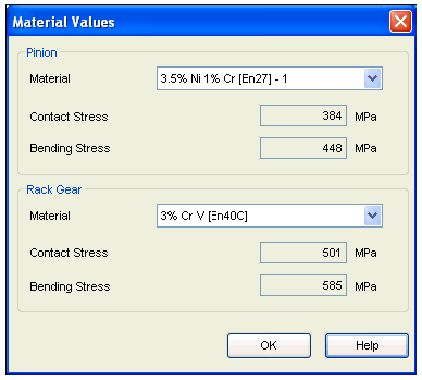 Simply select the material from respective material selection control. The values for Contact Stress and Bending Stress will be automatically displayed as per the material, which are stored in database. Remember when you are using SEER Standard material you cannot change these values.