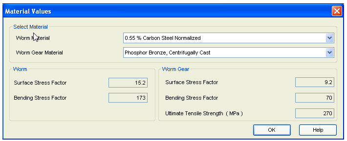You have to select the material of the Worm and the Worm Gear.