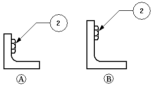 如果将指引线的端符与元素相连 (A),则注释会随元素而移动 (B)。如果在自由空间中创建指引线连接点,注释则不与图纸中的任何元素关联。