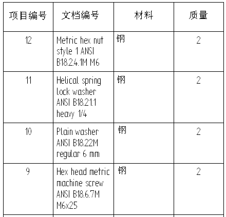 许多公司在其装配图纸中加入零件明细表,以提供关于个别装配部件的附加信息。例如,通常将零件号、材料以及所需的零件数量记载在零件明细表中。