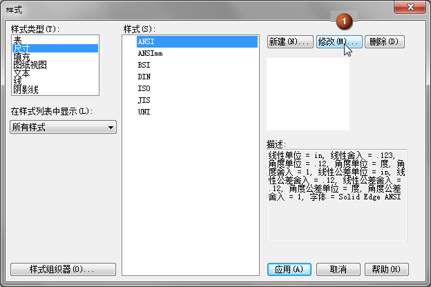 修改尺寸样式对话框显示正在修改的尺寸样式指定的默认内容。