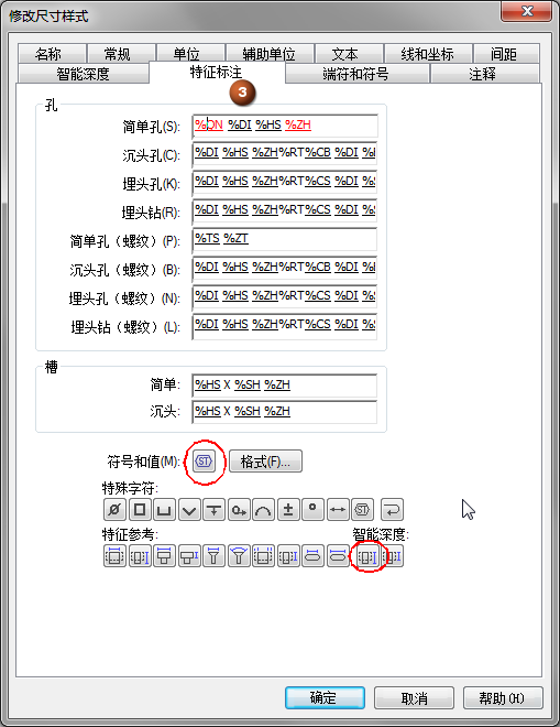 在尺寸样式中定义智能特征属性