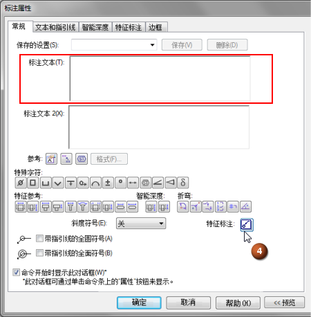 选择标注命令,然后单击特征标注按钮