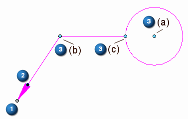 有折线的情况下,还提供另外两个浅蓝色编辑手柄 (3b,3c):