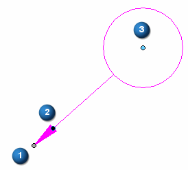 没有折线的 2D 注释的基本手柄包括 (1) 灰色连接手柄、(2) 深蓝色端符手柄和 (3,3a) 浅蓝色编辑手柄。