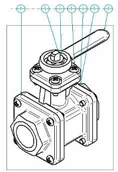 使用零件明细表(自动符号标注的零件明细表)可以自动创建对齐形状,图纸视图中的零组件符号标注在默认情况下与其关联。放置零件明细表前,可以使用“符号标注”选项卡(“零件明细表属性”对话框)将默认对齐方式(轮廓)改为其他方式,例如顶部、底部、左、右或矩形。