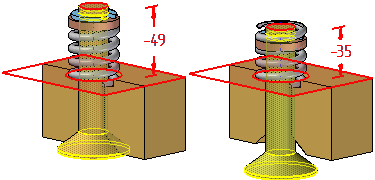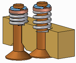 这就使您可将一个可调零件的几个事例放置于装配中,可调零件的每一个事例会与该零件事例当前参数值相符。例如,弹簧的一个事例显示为压缩,而弹簧的另一个事例显示为未压缩。
