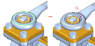 在装配中构造倒圆。可对活动零件的边进行倒圆。