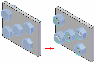定义要装入紧固件的顶孔。可以选择一个或多个圆形边。所选圆形边的直径必须均相同。圆形边的父特征必须穿透此零件。