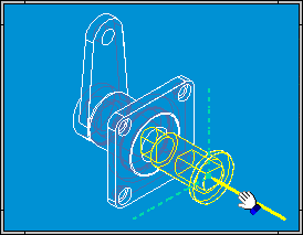 当该轴高亮显示时,按住鼠标左键不放,然后如下所示拖动光标。请注意,LEVER1.PAR 也高亮显示,并与轴一起旋转。轴杆旋转的原因是控制其位置的关系允许其旋转,但不允许其移动。