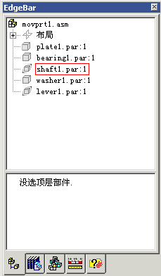在应用程序窗口中,使用“快速选取”来选择 SHAFT1.PAR。在“拖动部件”命令条上,设置“移动”选项。