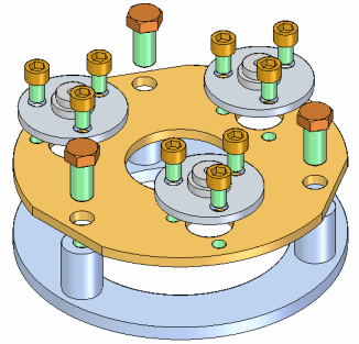 构造装配时,经常需要在一个阵列或镜像排列中多次放置零件和子装配。例如,将螺母、螺栓和其他紧固件放在零件(它们在该零件上固定在一起)上的矩形或圆形阵列中。使用阵列、镜像以及复制和粘贴,以避免单独放置同一部件多次。