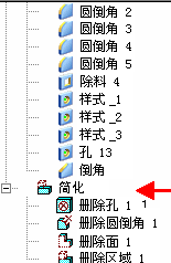 在处理装配时,使用复杂零件的简化版本将会非常有用。例如,包含许多圆角、倒斜角和孔的零件的处理速度比移除这些特征的零件慢。