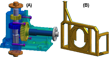 对装配 (B) 进行装配简化则不太理想,因为内部面较少,而且没有内部部件可排除。如果装配 (B) 也用于更高层装配(此时装配 (B) 是封闭的),则更高层装配可能更适于简化。