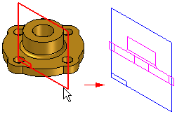 在活动的草图平面上创建 3D 部件的 2D 表示。可使用该命令创建部件草图,在将现有文档作为预定义部件放入装配草图时可使用它。