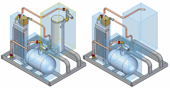使用区域时,只要装配结构保持最新,被视为处于区域内部或外部的装配部件就是准确的。当多人处理不同子装配时,装配结构会变为过时,然后,您打开更高层装配时,这些更改过的子装配中的一些会隐藏。例如,在打开文件对话框中,有一些选项允许您打开使用显示配置、区域或所有部件都隐藏的装配。