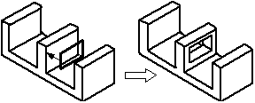 下一幅图显示类似的情况,不同之处在于轮廓顶部已保持开放。注意,轮廓的两端进行延伸,使特征切除了零件的上表面。