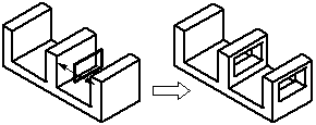 “穿过下一个”是拉伸和除料特征的范围选项之一。下列示例显示将“穿过下一个”用于除料的效果。