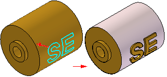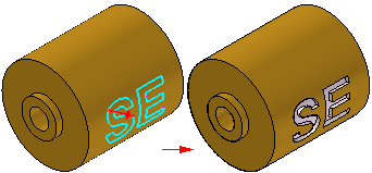 通过拉伸位于零件面上的封闭曲线构造垂直于该面的除料。使用文本轮廓或其他草图元素在非平整面上构造特征时,此命令非常有用。