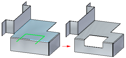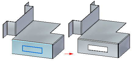 可以跨折弯移动圆柱除料并且除料将保持其形状。
