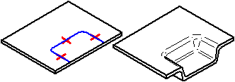 从选定区域构造钣金凹坑。如果使用开放轮廓,则轮廓的开放端在理论上必须与零件边相交。凹坑是一种特殊的模压成形特征,在此特征中,材料发生了变形。凹坑不能展平。