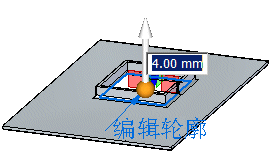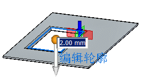 将显示除料方向箭头、动态编辑框和特征轮廓编辑手柄。