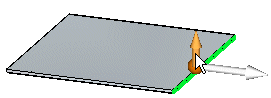 该部分弯边使用第一次单击的点所在的边作为起始边 (A),沿着选定厚度面的长边 (B) 创建。