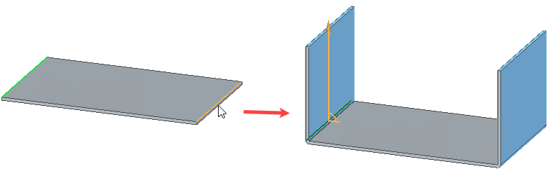 您还可以构造只在您选择的边上延伸一小段距离的弯边。在同步建模环境中,可以使用弯边命令条上的部分弯边选项创建部分弯边。