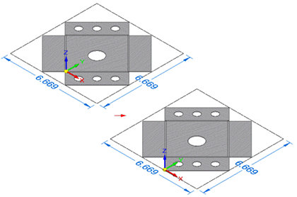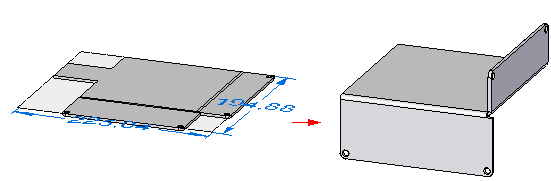 可以使用显示切割大小范围和尺寸选项来显示展平图样的范围框以及展平图样当前长与宽的尺寸。创建展平图样时,系统将确定陈列的大小,更新平直模型时,系统将重新计算其大小。