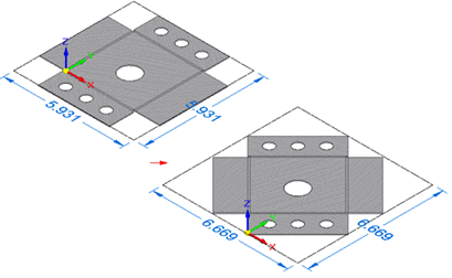 使用展平环境中修改选项卡上的旋转面和移动面命令更改展平图样的位置或方向。