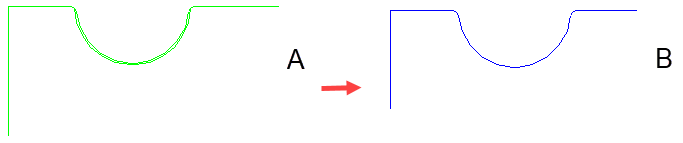 如果两个轮廓具有相同数目和类型的元素,并且第一个轮廓上的每一个元素都映射至第二个轮廓上元素类型相同的元素(线对线,圆弧对圆弧),则大多数情况下都能够将其展平。