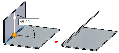 在同步建模环境中,可以使用“选择”工具插入折弯或使用“折弯”命令插入折弯。这两个工作流程都将在本主题中予以阐述。