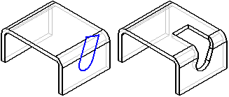 当需要精确装配时,使用“法向除料”。在许多情况下,“法向除料”使您不必为了给除料建模而展开零件。但是应注意到“法向除料”会在展平图样中创建 B 样条曲线。如果在没有 B 样条曲线时需要展平图样,则使用“展开”命令暂时展平零件,然后使用“除料”命令。